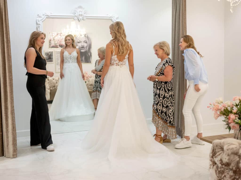 Das Anprobieren von Brautkleidern ist ein besonderer Moment und Sie sollten ihn genießen. Treffen Sie niemals eine wichtige Entscheidung, wenn Sie sich unter Druck gesetzt fühlen oder weil Ihr Termin kurz vor dem Ende steht. Haben Sie noch Zweifel? Dann nehmen Sie sich etwas Zeit, um darüber nachzudenken und vereinbaren Sie einen neuen Termin, um erneut ein Hochzeitskleid anzuprobieren. Stellen Sie sicher, dass Sie alle Kleider anprobieren, die Ihnen gefallen, damit Sie selbstbewusst und zufrieden nach Hause gehen.