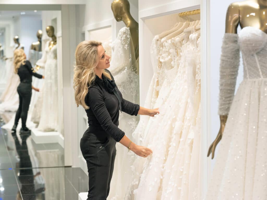 Tijdens het passen krijg je een veel beter beeld van wat bij je past. Niet alleen qua uitstraling, maar juist ook in hoe een jurk voelt en beweegt.
