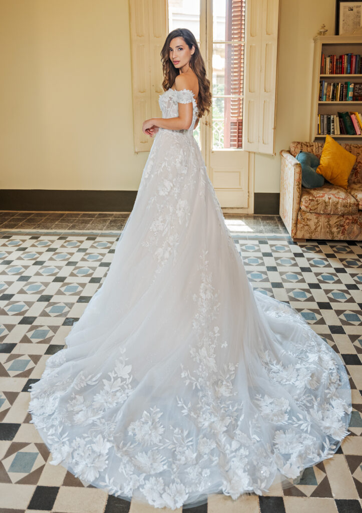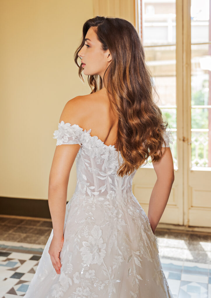 De Fashion Queen B2614 is een ideale keuze voor de bruid die droomt van een romantische, vrouwelijke en elegante trouwjurk. Dankzij de combinatie van blush en ivoor met kant, tule en 3D‑bloemen straalt de jurk verfijning en een subtiele luxe uit — perfect voor een klassieke of romantische bruiloft. Het A‑lijn‑silhouet zorgt dat de jurk soepel valt en flatterend is voor veel lichaamstypes. De off‑shoulder sweethearthals benadrukt op een zachte manier je schouders en halslijn, wat zorgt voor een elegante en vrouwelijke uitstraling. De subtiele details — zoals de 3D‑bloemen en het kant — maken de jurk dromerig en romantisch, zonder overdadig te worden. Kortom: de B2614 is een prachtige keuze voor een bruid die houdt van een zachte, romantische en tijdloze uitstraling — met elegante details en een klassieke charme.