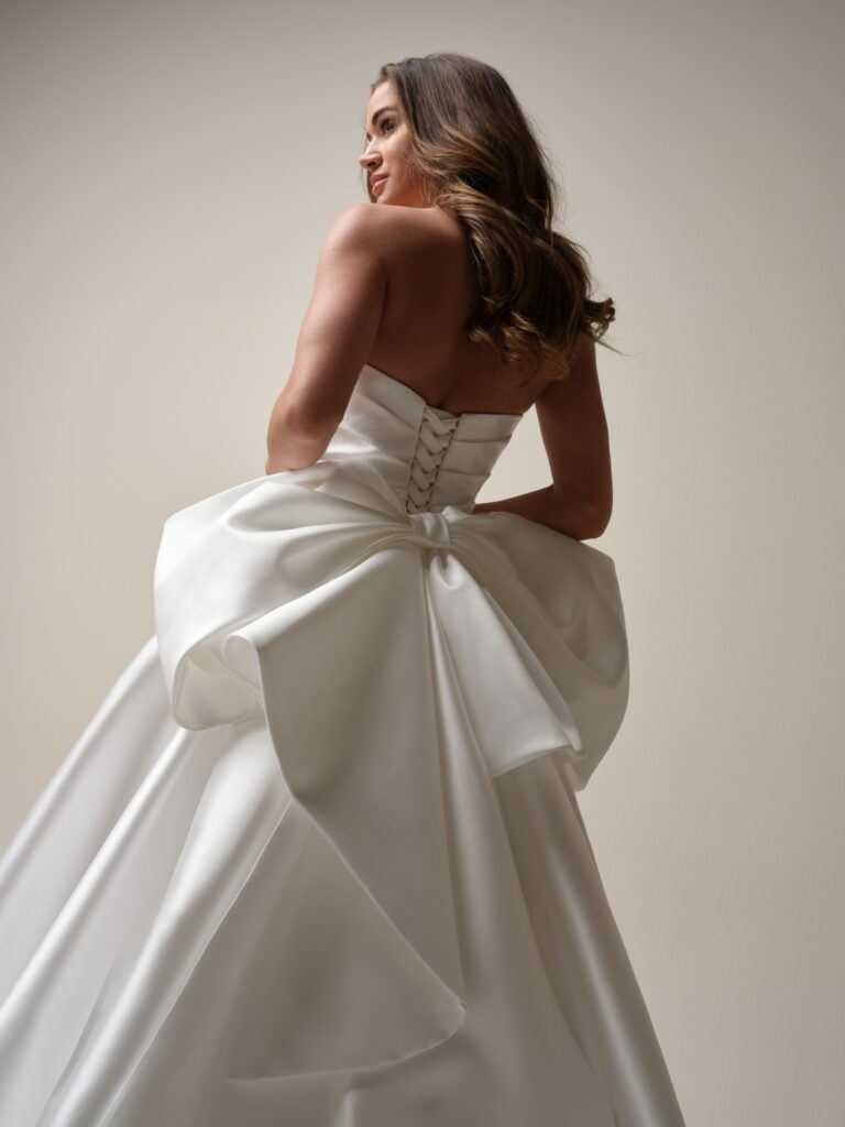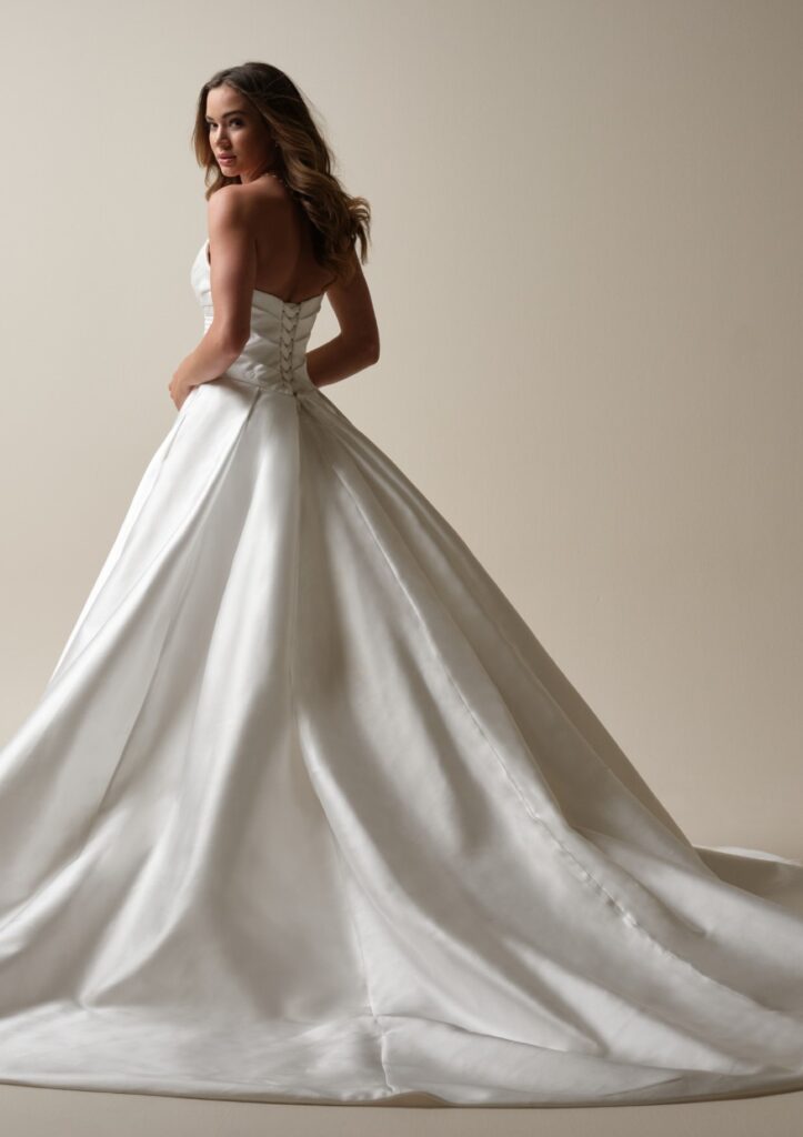 Maak je klaar voor een betoverende entree met de Maggie Sottero Aubrielle Marie trouwjurk! Deze prachtige baljurk is vervaardigd uit hoogwaardig Mikado en heeft een geplooide, asymmetrische rok die elegant stroomt. De strapless halslijn flatteert het bovenlijf, terwijl de klassieke ballgown-silhouette een tijdloze uitstraling biedt. Extra details maken dit ontwerp helemaal compleet: een afneembare Reena Mikado-strik en handige zakken zorgen voor comfort en speelse elegantie, terwijl de vetercorsetsluiting zorgt voor een perfecte pasvorm die je vormen accentueert. Voel je als een echte prinses op je grote dag! Verkrijgbaar bij Koonings Bridal, ’s werelds grootste bruidsmodespeciaalzaak.